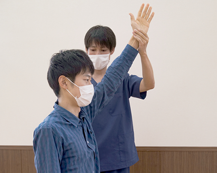 理学療法は運動療法や徒手療法、物理療法を用いて、失われた身体の機能を回復させる治療方法です。当院の理学療法士は、院内外へと活動の場を広げ、地域に根付き、自立支援、健康増進、介護予防などの分野や、部活動やスポーツの現場や、教育や研究などさまざまな場面でも活躍しています。また、最先端の技術やより専門性の高い治療を提供するため、院内外で学習、研修を行い自己研鑽に努めています。