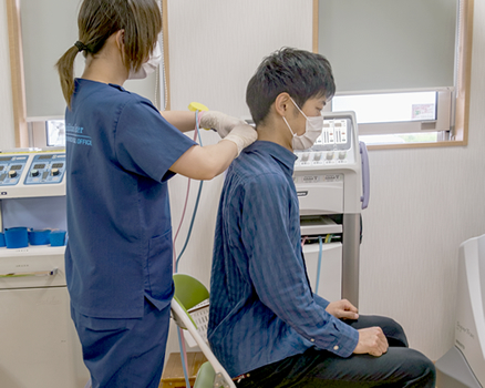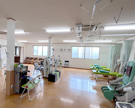 物理療法では、消炎・鎮痛を目的に、医師の指示の下リハビリ助手が、ホットパック等の温熱療法や干渉波や低周波等の電気療法、頸部・腰部の牽引機器を使用した牽引療法を提供しています。
